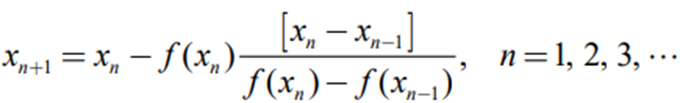 - Secant Method: f’(x) 대신 xn 과 xn-1 의 평균변화률을 이용한다.